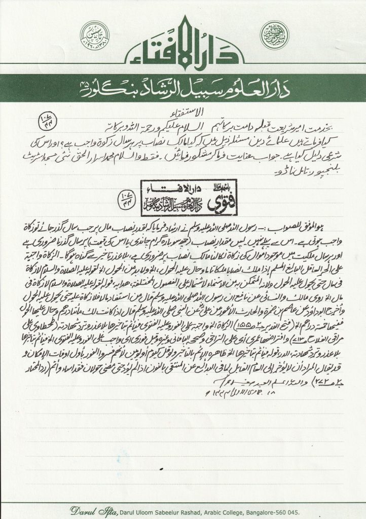 کیا فرماتے ہیں علمائے دین مسئلہ ذیل میں کہ کیامالکِ نصاب پر ہر سال زکوٰۃواجب ہے ؟ تو اس کی شرعی دلیل کیا ہے۔ جواب عنایت فرماکر مشکورفرمائیں۔ فقط والسلا م محمد اسرار الحق نمبر 545/5، نئی مسجد اسٹریٹ، بلنجپور ، تامل ناڈو۔